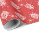 Custom wrapping paper for geeks featuring white snowflakes and QR code pattern with Merry Christmas! message on red. You may use one of the many online services to generate your own QRcode and to personalize this cool wrapping paper with your own custom Holiday message, company logo or website URL.