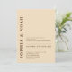 This invitation features a sophisticated beige background with a minimalistic design. The names of the couple are highlighted in bold, elegant typography, adding a touch of modern elegance to the invitation. The back features QR Code and monogram initials.