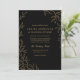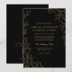 QR Code Modern Black Gold Minimal Leaf Wedding Invitation