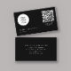 Elegant minimal typography custom logo, name, title, business details black business card simple easy to use template with scanning QR CODE to website or portfolio. Suitable for an architect, photographer, lawyer, realtor, professional corporate, technician, engineer, consultant, manager, supervisor, teacher, writer, journalist, publisher, content creator, freelancer, or blogger.