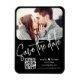 qr code modern chic white handwriting black background wedding photo Save the Date magnet,custom.