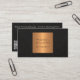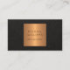 Simple and modern unique professional elegant business card with YOUR QR CODE to social media, to your website or photo gallery featuring a faux copper gold metallic geometric label over a black leather looking texture (PRINTED). ++++++++++++ Suitable for a masculine fashion stylist, home interior decorator, designer, home staging, architect, business events planner, self employed creative professionals, boutique owners, or photographers.