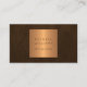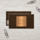 Simple and modern unique professional elegant business card with YOUR QR CODE to social media, to your website or photo gallery featuring a faux copper gold metallic geometric label over a dark brown leather looking texture (PRINTED). ++++++++++++ Suitable for a masculine fashion stylist, home interior decorator, designer, home staging, architect, business events planner, self employed creative professionals, boutique owners, or photographers.