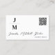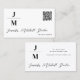 Stylish modern black and white monogram initials and signature script name small business branding business cards with scanning QR code featuring double business name initial letters logo.