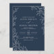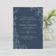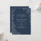 QR Code Modern Navy Blue Minimal Leaf Wedding Invitation