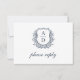 QR Code Navy Blue Crest Monogram Wedding RSVP Card