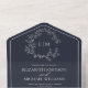 QR Code Navy Blue Leafy Crest Monogram Wedding All In One Invitation