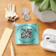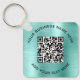 Elegant promotional keychain for your business or organization with a light mint green faux brushed metallic background. Add your QR code or logo and two lines of customized text, such as your company name, slogan, thank you, or leave blank.