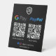 A simple custom Black business scan to pay by Google Pay or Paypal QR code pedestal sign in a modern minimalist style.