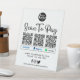 Modern, professional black and white business scan to pay qr pedestal sign. Design features typography script ''scan to pay'' in trendy black lettering, white background, 3 qr codes with payment method that can be replaced by your own icons if required. Personalize further with your logo , website, social media and phone number. Perfect for small business owners.