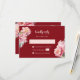 Watercolor peony flowers on a maroon red background. RSVP Chinese Wedding Card with a scannable qr code for your wedding website.