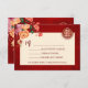 Les tons rouges, oranges et neutres donnent des fleurs de pivoine sur un arrière - plan rouge chatoyant et un double symbole de bonheur doré. Carte Mariage chinoise RSVP avec un code qr scannable et des noms de mariés et mariés.