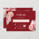 Aquarelle des fleurs de pivoine sur un arrière - plan rouge marron. Carte Mariage chinoise RSVP avec un code qr scannable pour votre site mariage.