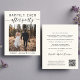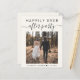 Budget-friendly light cream elopement or private wedding announcement and all-in-one wedding reception invitation. The front features your photo, "Happily Ever After Party" in a mix of simple typography and a stylish script with swashes and your first names and wedding or reception date joined together by a heart. On the back, personalize your marriage announcement and reception invitation, input your wedding website address to create a QR code for guests to scan to see your wedding photos, all the details and to RSVP online, and add your names in a signature-like script. This budget semi-gloss paper is similar in weight to photo paper. A larger 5x7 traditional card stock version is also available (message us for the link).