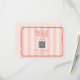 Wedding RSVP with red frame and floral illustration over light pink stripe background with red text on front and back. Personalize the text and QR code.