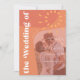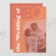 Abstract shapes retro vintage 70s style unique QR code online RSVP all in one budget photo sunburst wedding invitation with "the wedding of" bold typography in a vibrant trendy modern rust orange and terracotta earthly chic summer colour palette. +++++++ Please note that all the colours are changeable. ++++++++++++ The invitation is suitable for casual stylish summer or autumn fall contemporary weddings.