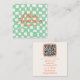 QR Code Retro Green Hand Drawn Chequered Groovy Square Business Card