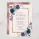 QR Code Rose Gold Navy Blue Dusty Pink Floral Invitation