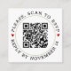QR code online RSVP green round border and red hearts wedding enclosure card. Your guests can scan the QR code on this card to online RSVP. The backside covers a green stained background.