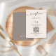 A simple minimalist wedding RSVP with a QR code website online details, QR code website online details, with a URL scannable scan online, guest more information URL response, a response via website QR code, a modern simple elegant minimal colour, an elegant casual simple response enclosure, a stylish trendy calligraphy script, a modern calligraphy typography text, a simple minimalist minimal design, a blush taupe tones colour