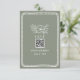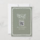 Mariage RSVP avec cadre blanc et illustration florale sur arrière - plan vert sage avec texte rouge sur l'avant et l'arrière. Personnalisez le texte et le code QR.