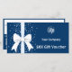 The design includes a decorative ribbon on a confetti background, with the company’s custom logo and name displayed prominently on the right. Beneath this, the voucher value is clearly presented.