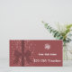 The design includes a decorative ribbon on a confetti background, with the salon’s custom logo and name displayed prominently on the right. Beneath this, the voucher value is clearly presented.