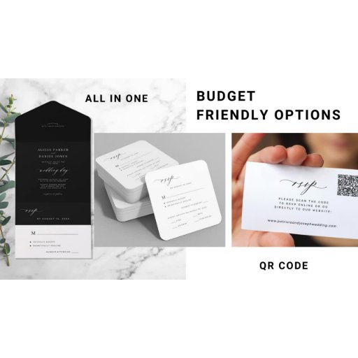 QR code simple black and white wedding RSVP Card