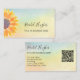 This botanical business card is decorated with a yellow watercolor sunflower and a colourful background.