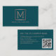 QR Code Teal Rose Gold Monogram Elegant Business Card