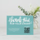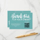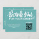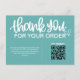 Express your gratitude with our aqua blue QR Code "Thank You for Your Purchase" Card Package Insert. Your customer scan the QR code to reveal a heartfelt message, exclusive offers, or a personalized thank-you note, adding a special touch to your customer's shopping experience. Show appreciation and foster loyalty with this innovative and thoughtful package insert.