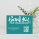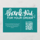 Express your gratitude with our teal QR Code "Thank You for Your Purchase" Card Package Insert. Your customer scan the QR code to reveal a heartfelt message, exclusive offers, or a personalized thank-you note, adding a special touch to your customer's shopping experience. Show appreciation and foster loyalty with this innovative and thoughtful package insert.