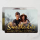 Announce the joyful news of your engagement and upcoming wedding with unique custom photo save the date real foil invitations. The 2 pictures, scannable QR code, and all wording on this template are simple to personalize, including script overlay which can be changed to "Save Our Date." (IMAGE PLACEMENT TIP: An easy way to centre a photo exactly how you want is to crop it before uploading to the Zazzle website.) Front side of card is printed with real metallic gold foil lettering. The design also features two pictures of the engaged couple, trendy handwritten script calligraphy, and modern minimalist typography. By scanning the QR code with their phones, guests are sent directly to the wedding website where they can see all of the important details and connect with you online. This stylish announcement note card is an elegant way to inform friends and family of your upcoming special day celebration. Congratulations to the bride and groom!