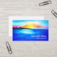 QR code Tropical beach business card, with a sunset ocean design. White and black lettering can be customized with your own text. You also add you own information for a scannable QR code. Filled with blue and red colours, this card adds a modern abstract touch while promoting your business.