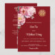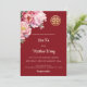 This elegant Chinese wedding invitation features watercolor peonies and a gold double happiness symbol on a dark red background. Bride and groom names in an elegant handwritten script. Chinese wedding invitation or tea ceremony invitation. At the backside are the details and a scannable qr code for your wedding website.