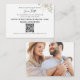 This design features a wedding invitaiton enclosure card, with a scannable QR code, a budget rsvp response, with weddings website, with elegant calligraphy, a photo template, and a minimal, simple style