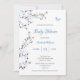 This cute baby shower invitation features blue cherry blossoms and butterflies on a white background. The lovely cherry blossoms printed on this boy baby shower invitation card signal the arrival of spring and are emblematic of a new arrival in the family. With a scannable qr code for your gift registry at the backside.