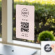 A simple custom blush pink business vinyl window cling decal sign template in a modern minimalist style which can be easily updated with your company logo, QR code and custom text.