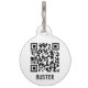 Ideal for the security of your pet. Let others scan your QR Code With their mobile phones to find out your contact number or a link to you. Replace image with your own uploaded QR Code. Add the name of your pet. There are various websites that allow you to create and download QR Codes free. QR Codes can be created for websites, emails, Wifi, Vcards, and many other uses. One example is https://www.qr-code-generator.com