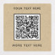 Easily add your own QR code destination website and choice of text to this design. Remove the top or lower text if you prefer. Minimalist and professional to promote your brand. Brown paper background is a photographic effect.