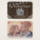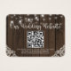 Rustic Farm Barnwood String Lights and Lace Wedding Website cards featuring your photo and a rustic wood background with twinkling strings of lights with vintage style lace in the bottom corners. TYour QR Code, paired with our modern, chic script typography, makes this the perfect registry card to add to your rustic, chic affair or boho farmhouse wedding. Please contact us at cedarandstring@gmail.com if you need assistance with the design or matching products.
