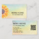 This floral business card is decorated with a yellow watercolor sunflower on a colourful background.