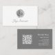 QR code Yoga Instructor business card, with an abstract sphere design with on a white and grey background. With grey and white lettering, you can add your own information. You also add your website for the QR code. Great for promoting your yoga studio or fitness business.