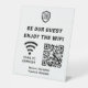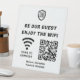 A simple custom white business scan to Connect Wifi QR code pedestal sign in a modern minimalist style.