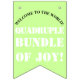One-of-a-kind Welcome to the World Quadruplets announcement bunting banner in blue, green, white for the new baby boy's. Personalize Blue Flags 2, 3, and 15, 16 with baby names, birth stats, photos, and quadruplet numbers. Or, leave cute baby feet images as is. Quadruple Bundle of Joy is written in white Stencil text on green background on left end of banner. Nice celebration bunting banners with large sturdy flags for hanging outdoors or can hang indoors in large area. Original Photography and Graphic Design Copyright © 2010, 2018 TamiraZDesigns. All rights reserved. Visit my store for more unique items at: www.zazzle.com/tamirazdesigns*