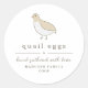 Round egg carton label includes a cute handdrawn quail. Use for your farm or coop.