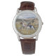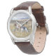 The watch looks really great! Very sharp and well done. The leather band is really nice, though for a man's watch I think it should be longer. Unfortunately, it isn't big enough for my husband's wrist but I will get a replacement because he is very excited to wear it!