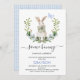 Quaint Blue Green Boys Little Bunny 1st Birthday Invitation