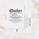 Amusing definition of Quakers on the front. On the back, place your meeting information! Hand these out to newcomers and visitors, insert them in mailings, carry them with you!