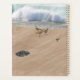 Trois pluviers et un bécasseau sur une plage de sable, avec des brise-lames dans l'arrière - plan crée un beau planificateur que vous adorerez.